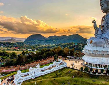 A destination of stunning temples, breathtaking landscapes, and rich heritage, Chiang Rai is home to the iconic White Temple (Wat Rong Khun), the mystical Blue Temple, and the thought-provoking Black House Museum. Explore the historic Golden Triangle, where Thailand, Laos, and Myanmar meet, or visit Doi Tung’s lush tea plantations and mountain viewpoints. With its peaceful countryside, hill tribe villages, and artistic charm, Chiang Rai is a must-visit for culture seekers, nature lovers, and those looking for a serene escape.